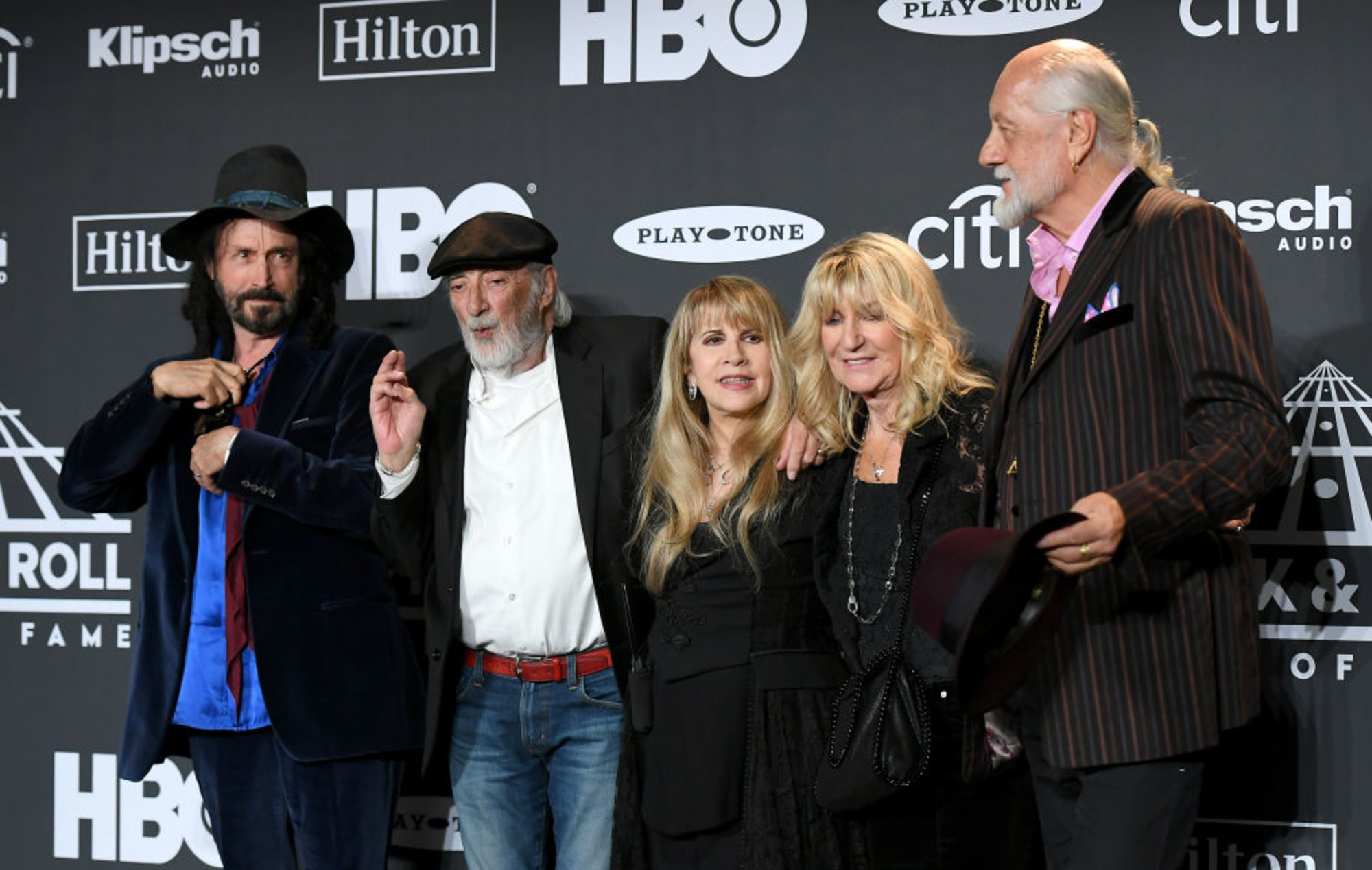 NEW YORK, NEW YORK – MARCH 29: Mike Campbell, John McVie, inductee Stevie Nicks, Christine McVie and Mick Fleetwood of Fleetwood Mac pose in the press room during attends the 2019 Rock & Roll Hall Of Fame Induction Ceremony – Press Room at Barclays Center on March 29, 2019 in New York City. (Photo by Nicholas Hunt/WireImage)